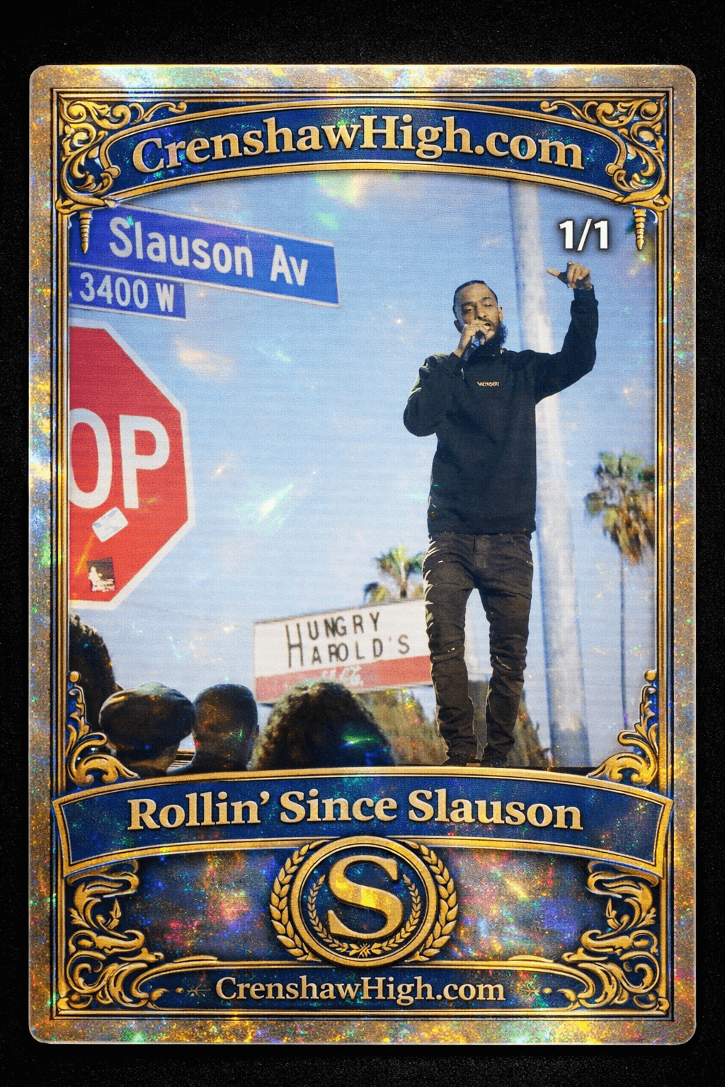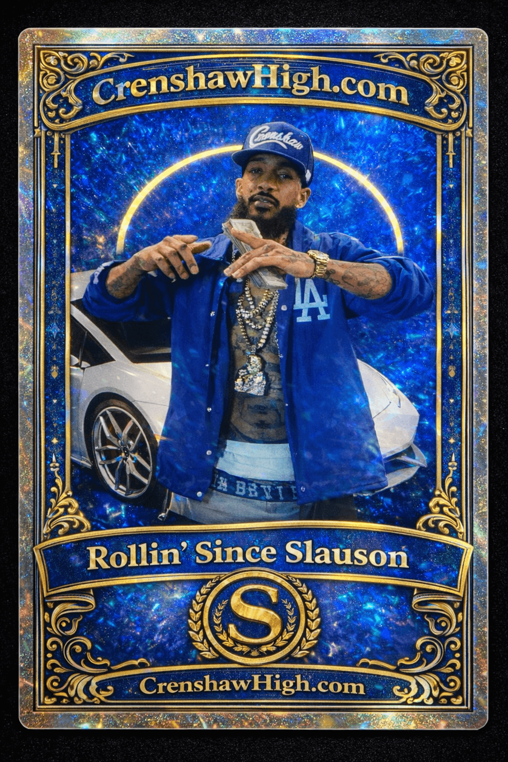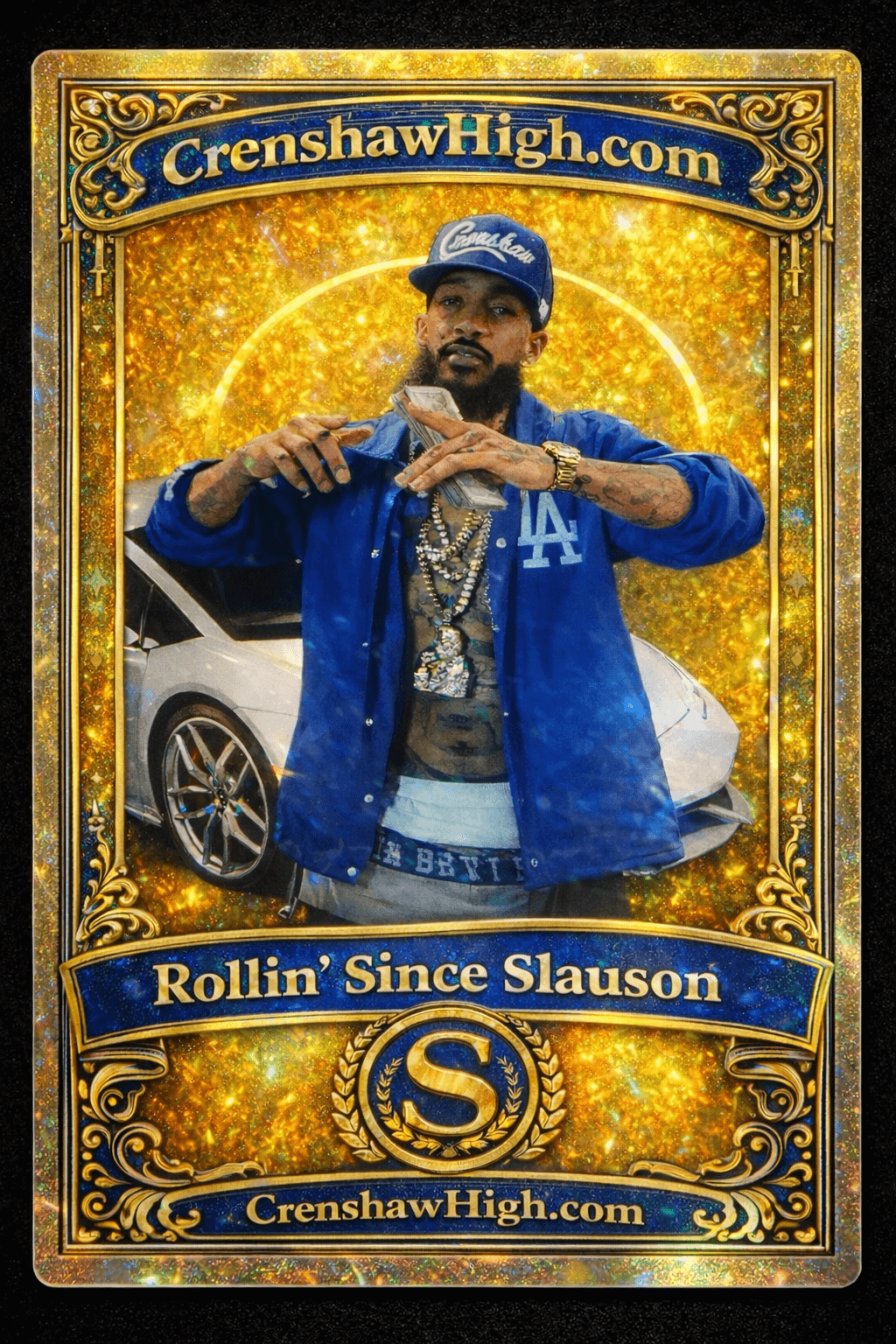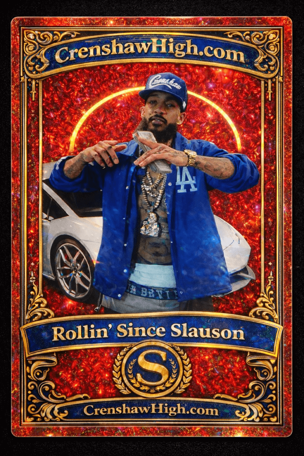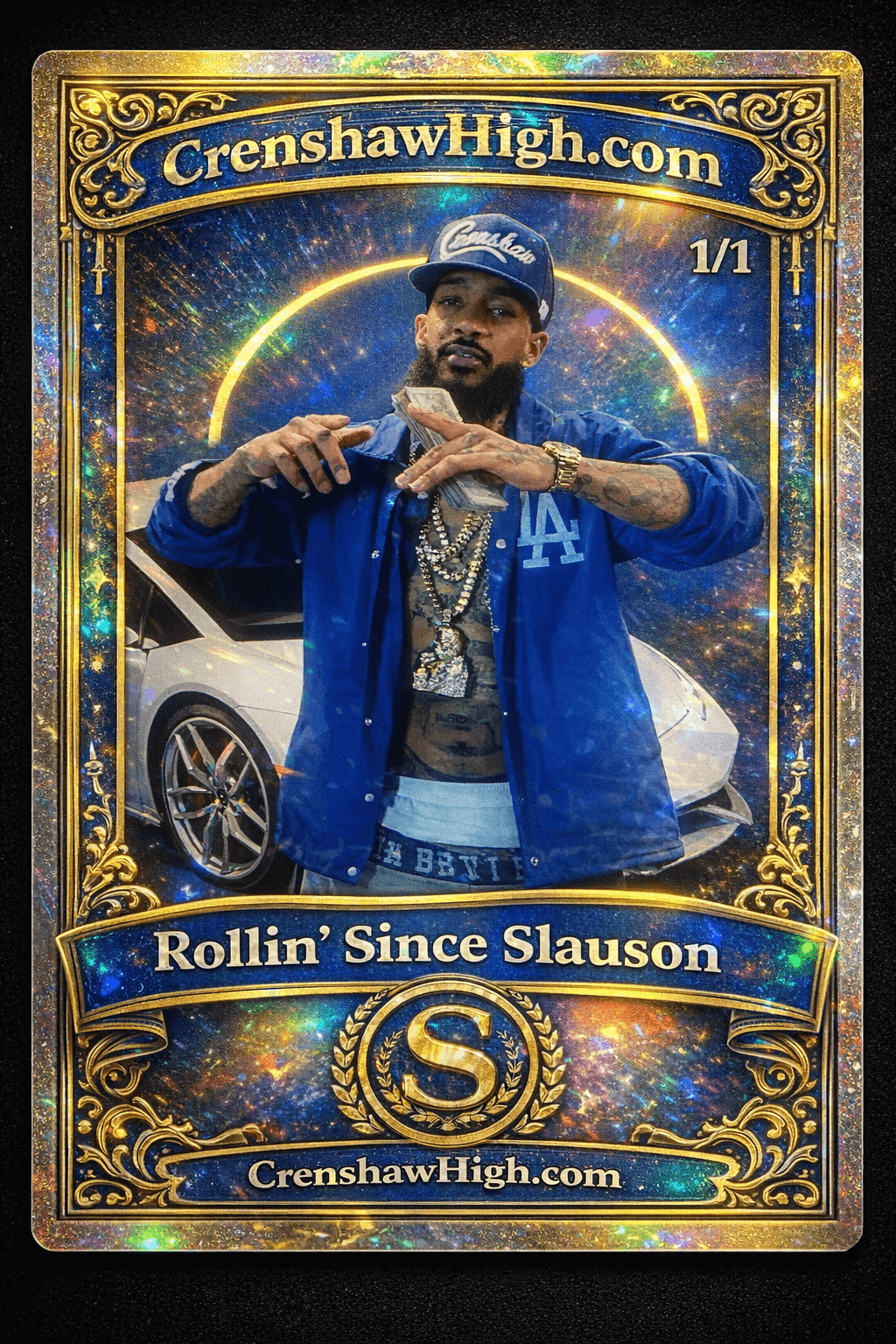 This one-of-one Nipsey Hussle tribute card is held permanently by the creator of CrenshawHigh.com.